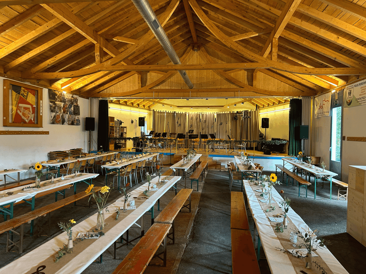 La société a la chance de disposer de son propre bâtiment, situé Sous les Roches 4 à Orvin. Construite en 1923 et rénovée à plusieurs reprises, la salle est disponible à la location pour les habitants du village ainsi que pour des utilisateurs externes, pour des manifestations lucratives ou non lucratives.